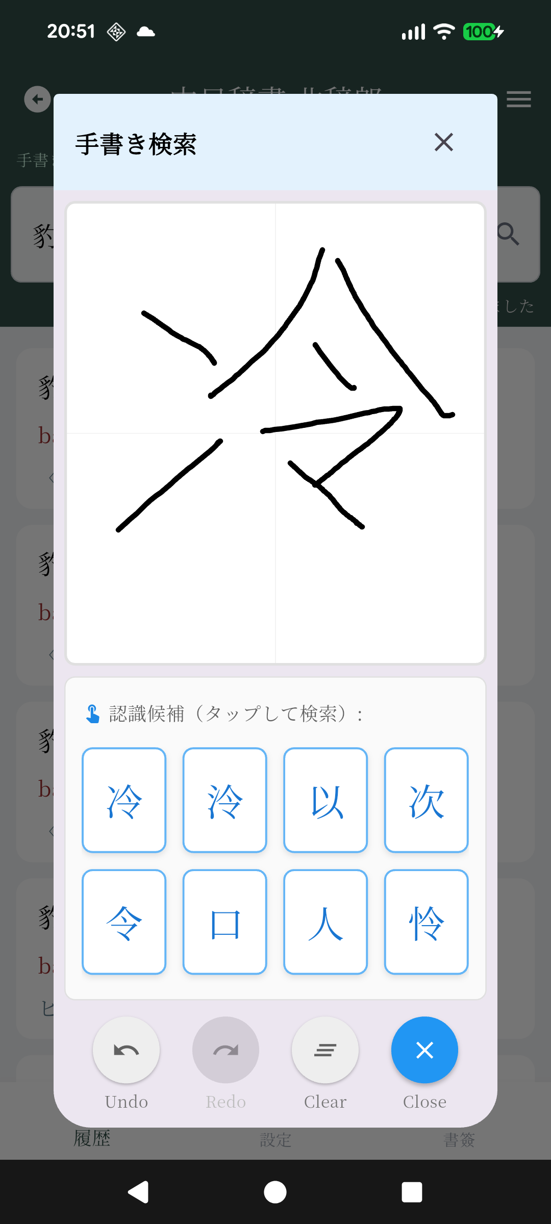 ※手書き検索は、初回起動時に認識モデルをダウンロードする必要があります(10~20MB)。